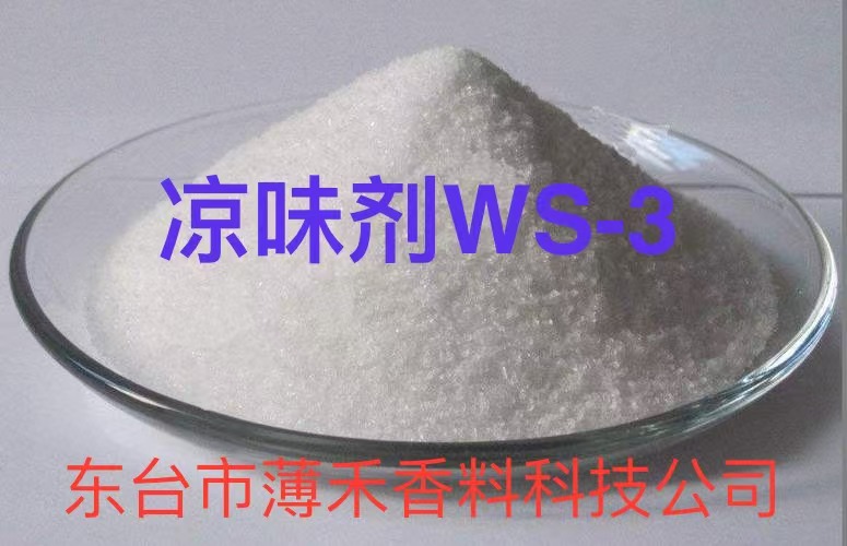凉味剂WS-3是一款薄荷脑衍生物的别名。,其化学名称是“N-乙基-2-异丙基-5-甲基-环已烷甲酰胺”,又简称“薄荷酰胺”;其分子式为:“C13H25NO”,分子量:211.35;其CAS登录号为:“39711-79-0”。它是以天然薄荷脑为原料,经多步合成研制而衍生成的一款新型清凉剂。它不仅承袭了天然薄荷脑清怡而新鲜、自然而强烈的凉味和凉感,而且克服了天然薄荷脑辛辣而刺激的薄荷气味和相当一部分难以去除的苦味,更是获得了比之天然薄荷脑更加强烈而持久的凉味和凉感。特别适用于要求清凉味和凉感强烈而持久,又没刺激性薄荷香气的多种食品、药品、保健品和日用品、化妆品等。 一、产品性状 色 状:白色结晶性粉末; 香 气:极为轻微的薄荷气息,强烈的薄荷样凉味和持久的凉感; 溶解性:可溶于乙醇、丙二醇等大多数有机溶剂中。几乎不溶或极微溶于水,疏水指数XLogP值为3.40。